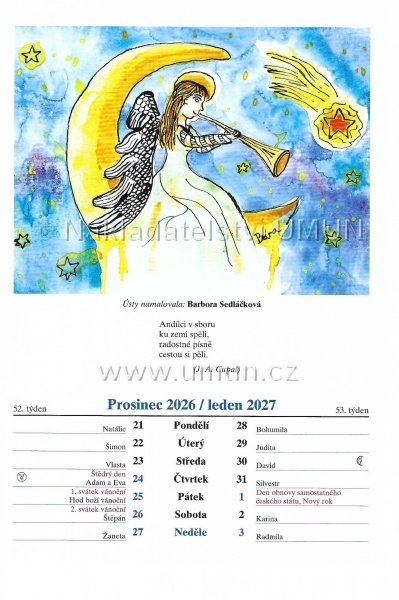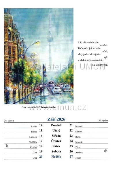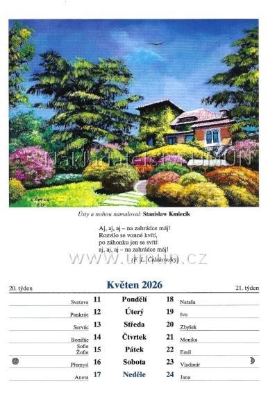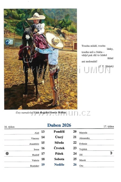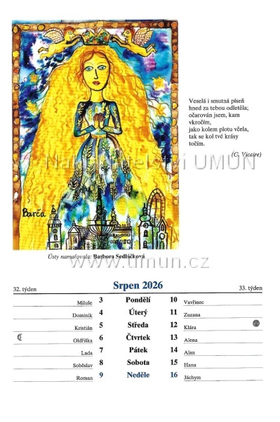 Čtrnáctidenní kalendář, doplněný ilustracemi malířů.